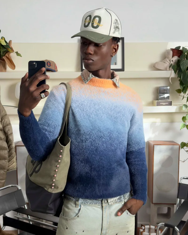 - Hairy knitted gradient sweater.