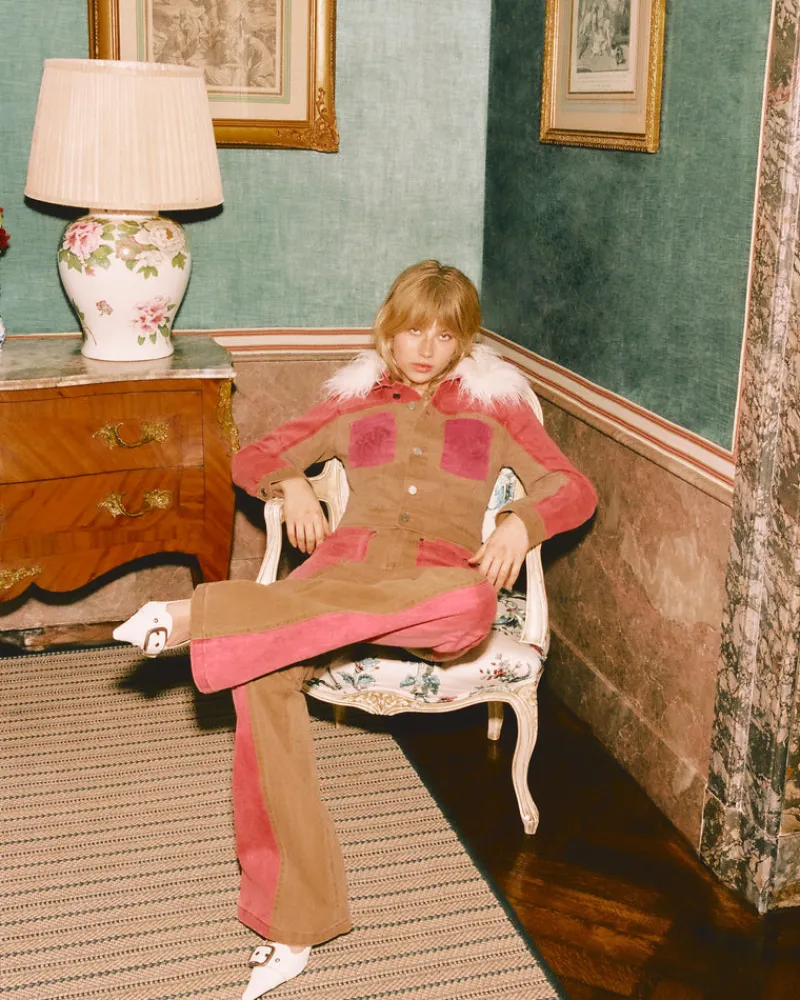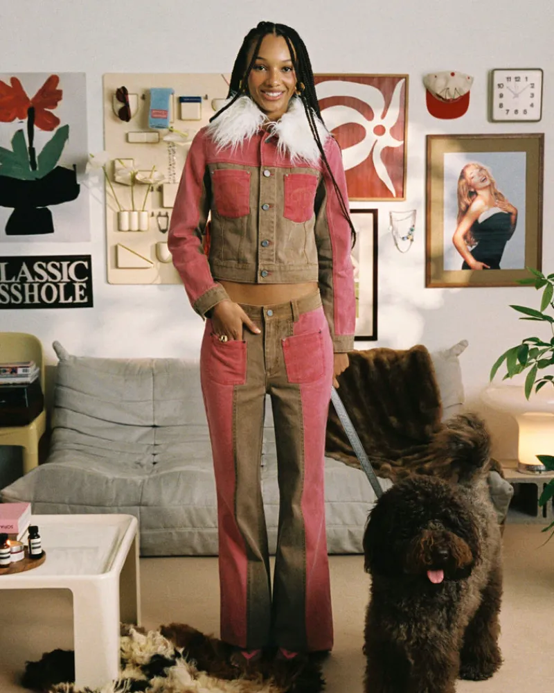 COMPOSITION:Shell Fabric: 100% CottonFIT:BootcutGRAPHIC:Real leather jacron on back.TECHNICAL DETAILS:-