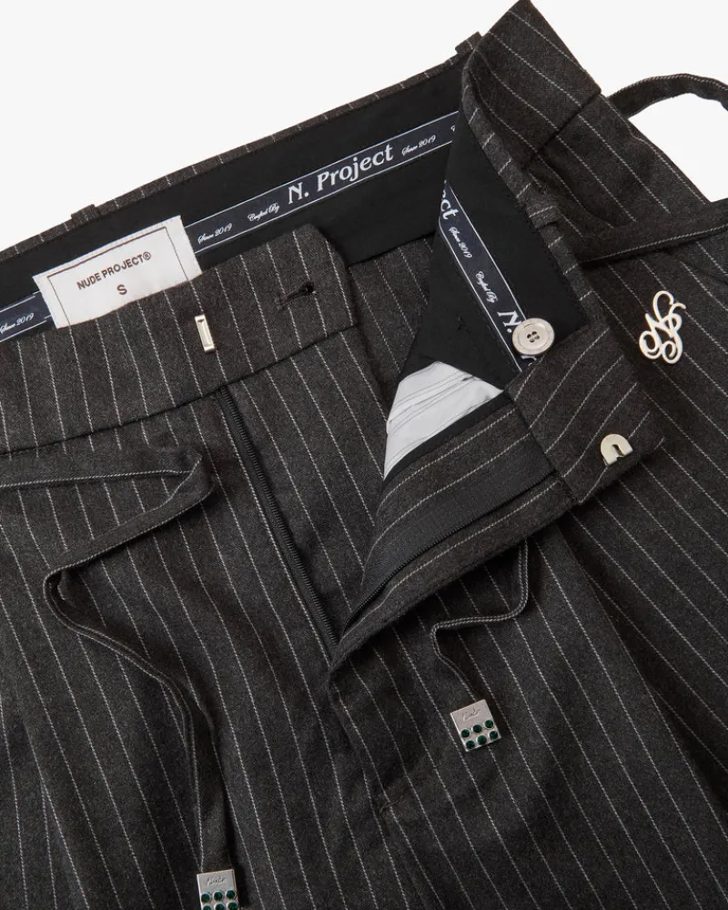 Stripped satin lining.Decorative jetted pokets on back.