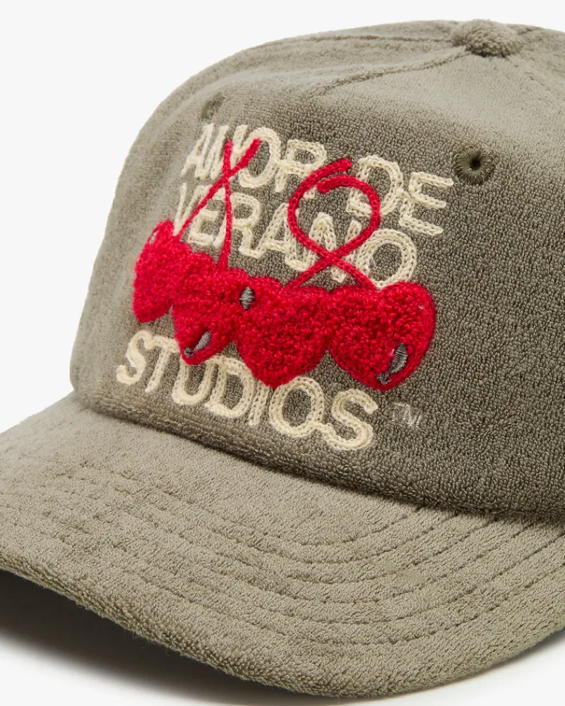 Front cherry embroidery and side logo embroidery for a playful and stylish touch.