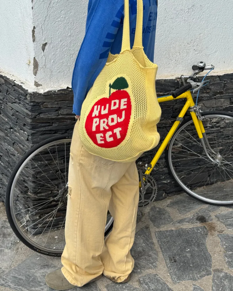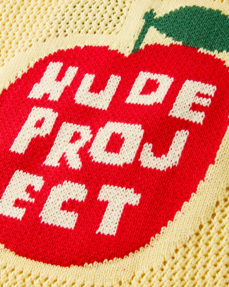 Front apple detail and logo for a fun and fresh look.