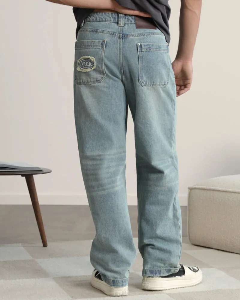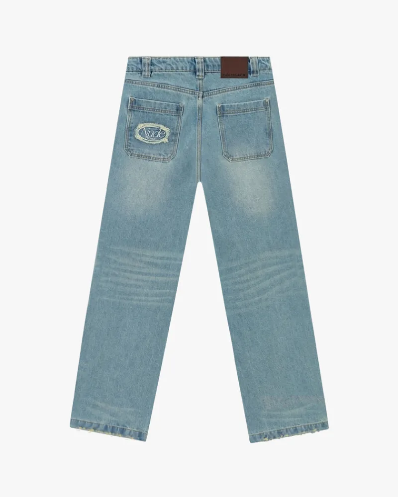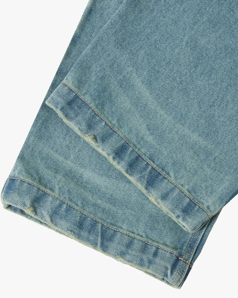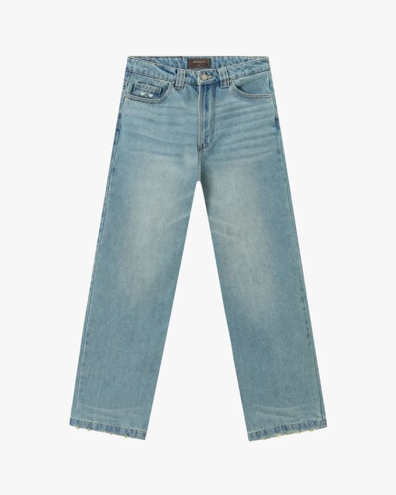 COMPOSITION:-100%CottonFIT:- Soft straightTECHNICAL DETAILS:- Custom medium blue wash.- Light whiskers wasted effect on …