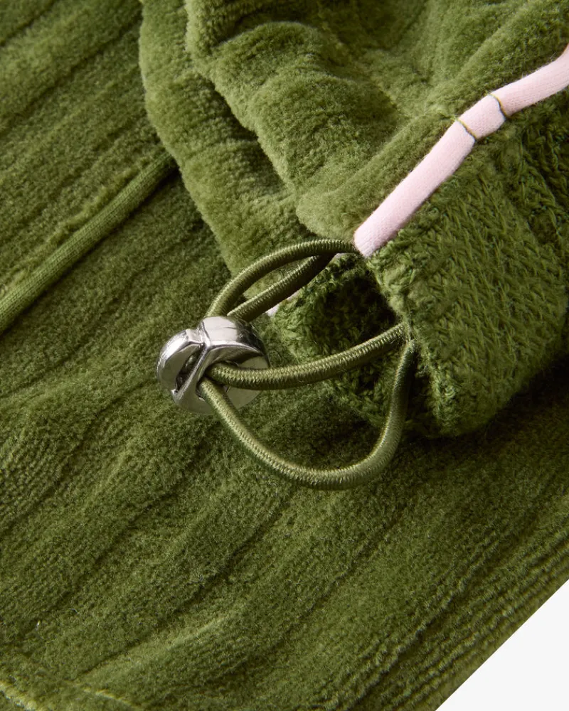 Crochet & velvet mix fabric.Jacquard ribbed neck.