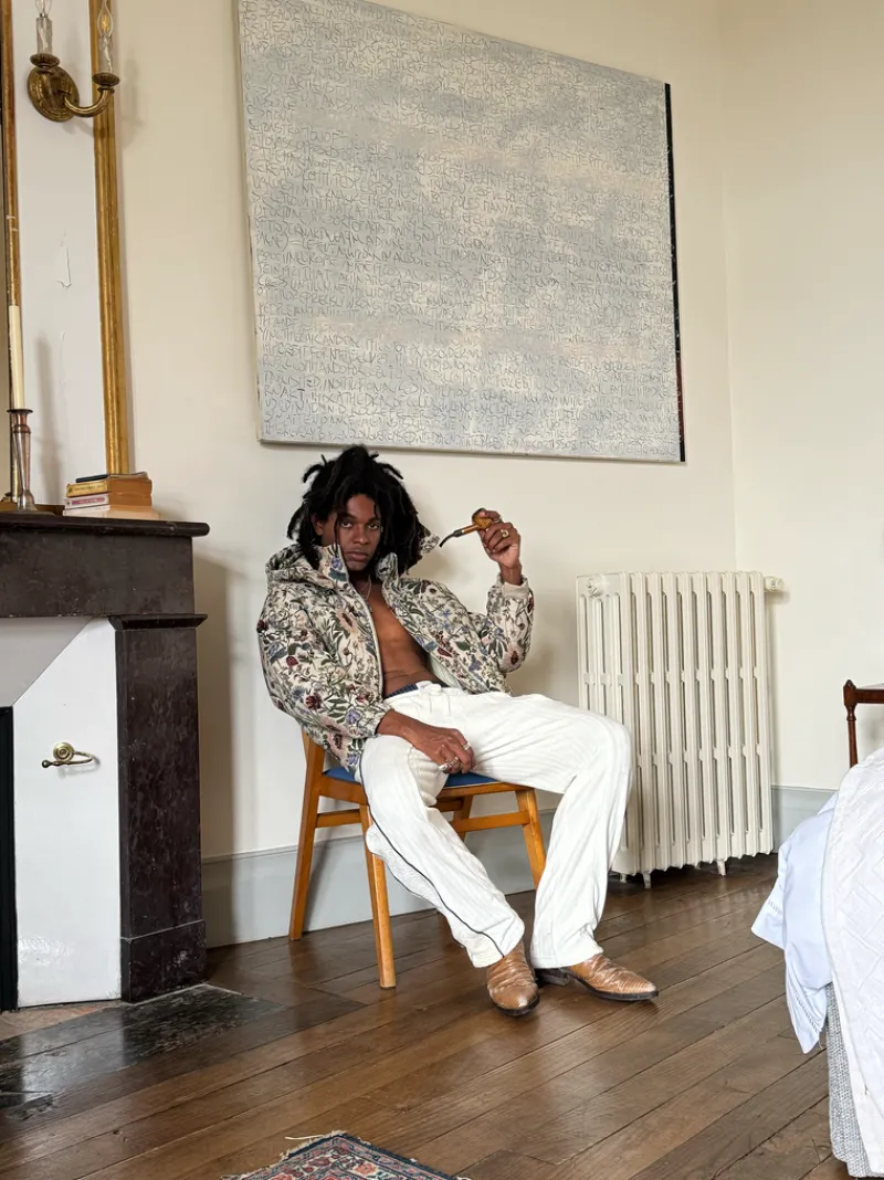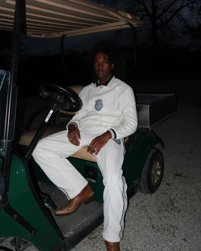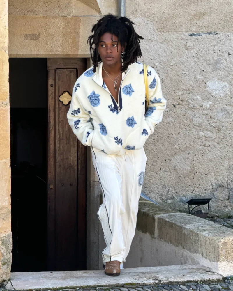 Crochet & velvet mix fabric.Jacquard ribbed neck.