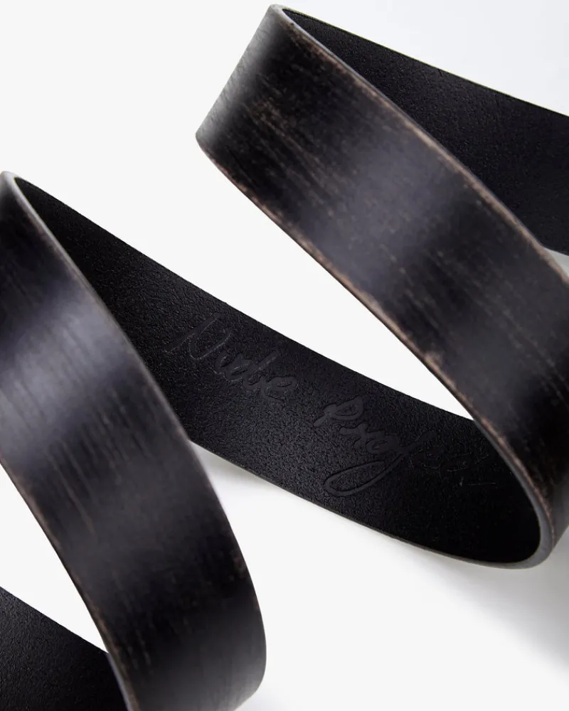 Front metal buckle featuring the Nude Project logo. The belt has a distressed effect throughout.