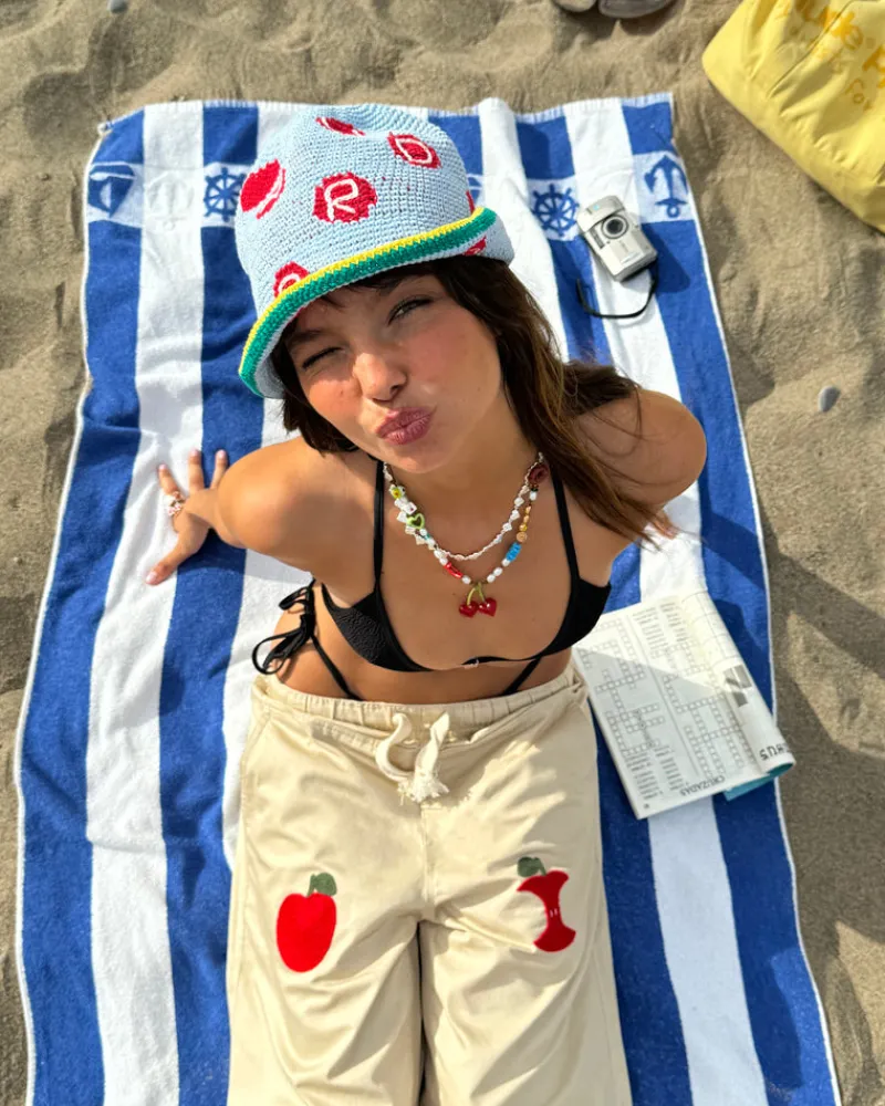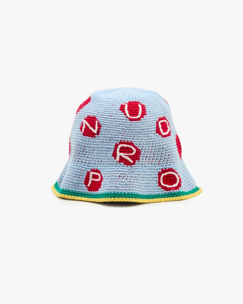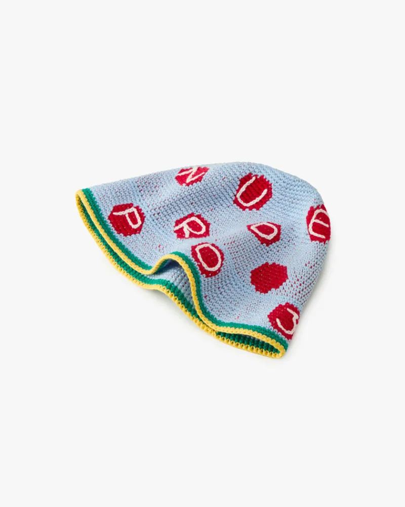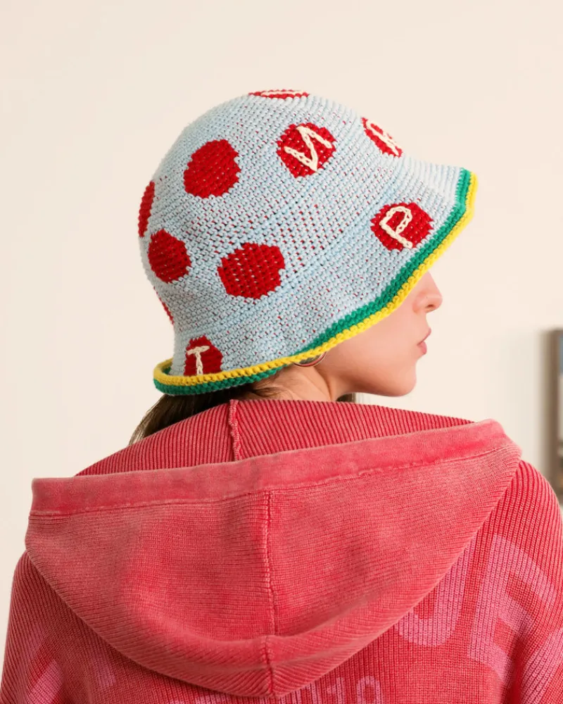 Deep Blue Base With Hand-Crocheted Red Dots Featuring The Words “Nude Project” Integrated Into The Pattern. A Bold Reinterpretation Of A Classic—Playful, Handcrafted, And Unapologetically Branded