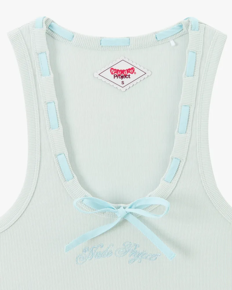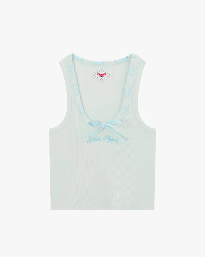 Ribbed tank top with embroidered logo on chest mtaching ribbon color.