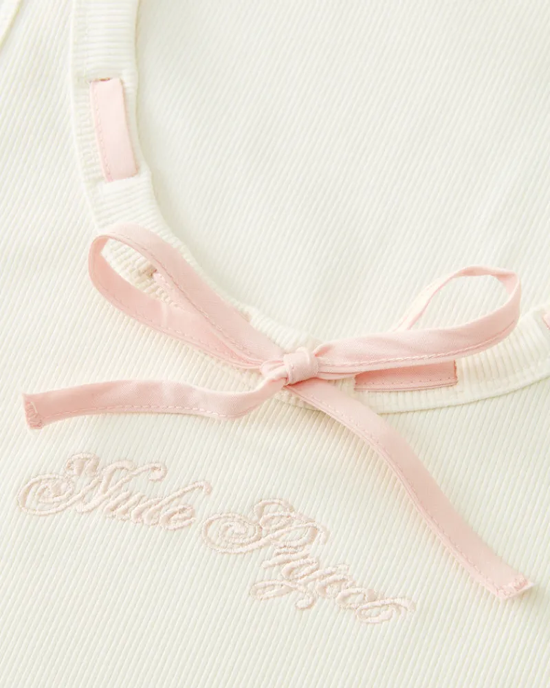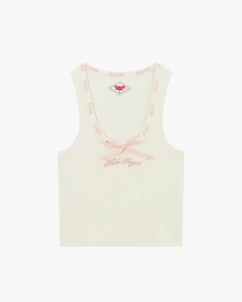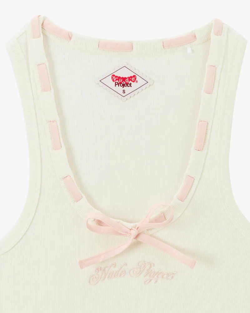 Ribbed tank top with embroidered logo on chest mtaching ribbon color.