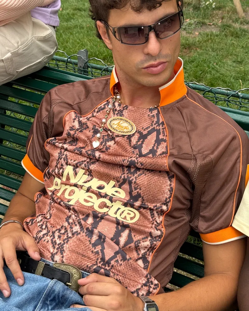 Football inspired tee with rib knit collar (100%Co) Rib knit ending on sleeves.Piping and sublimated patterns and screen…