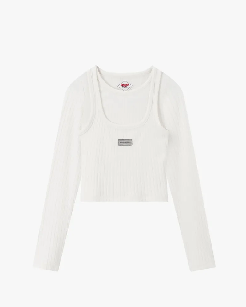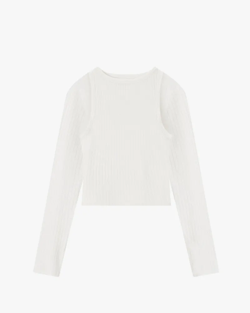 Double t-shirt fixed on shoulder seam.