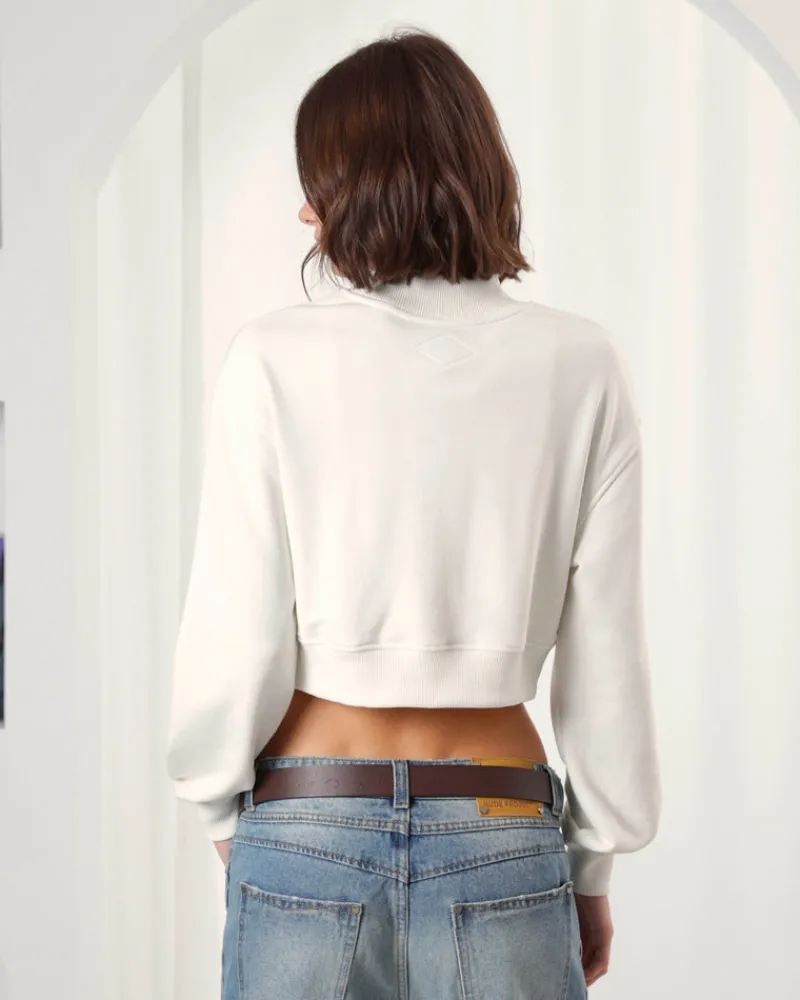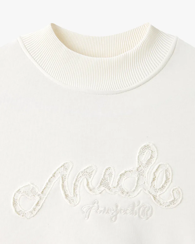 COMPOSITION:Shell Fabric: 65% Cotton 35% PolyesterFIT:Cropped. GRAPHIC:Lace patch with decorative stitching.TECHNICAL DE…