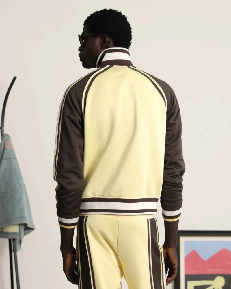 Full zip jacket with ranglan sleeves and decorative tapes
