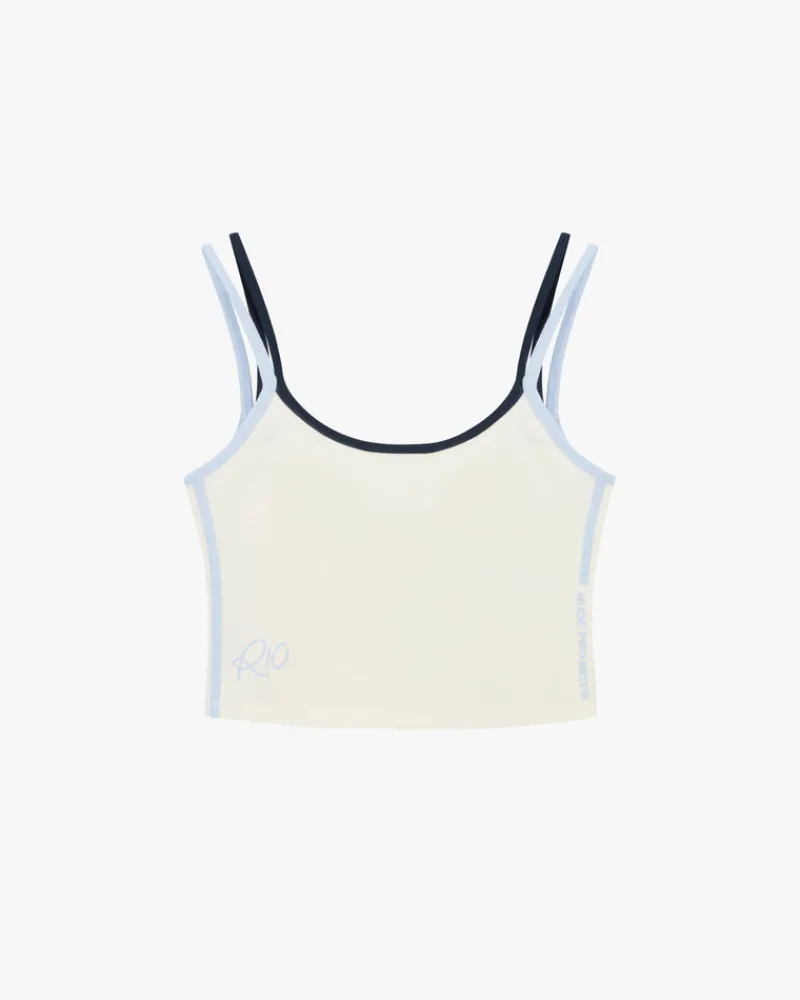 COMPOSITION:95% Cotton – 5% ElastaneFIT:Cropped tank topGRAPHIC:Front: Screen print TECHNICAL DETAILS:Double strap