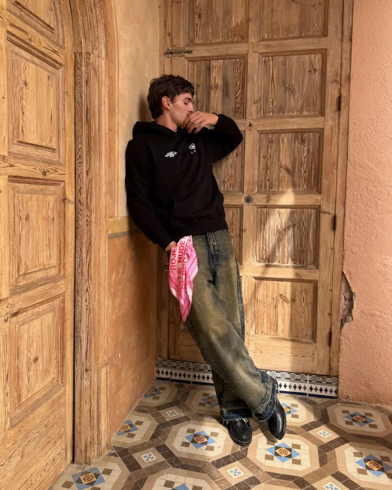 Back: Screen print & chain stitching