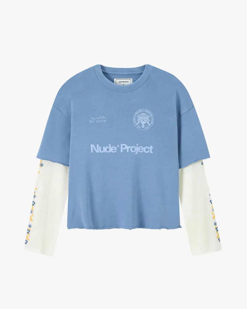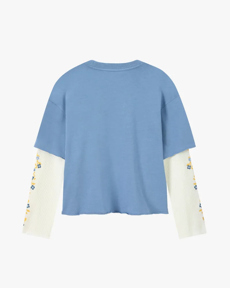 Fake long sleeve tee with mixed fabrics: waffle+ single jersey