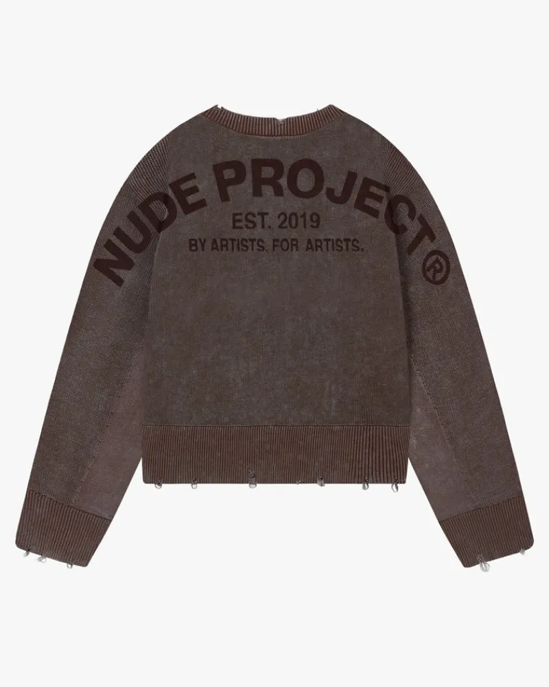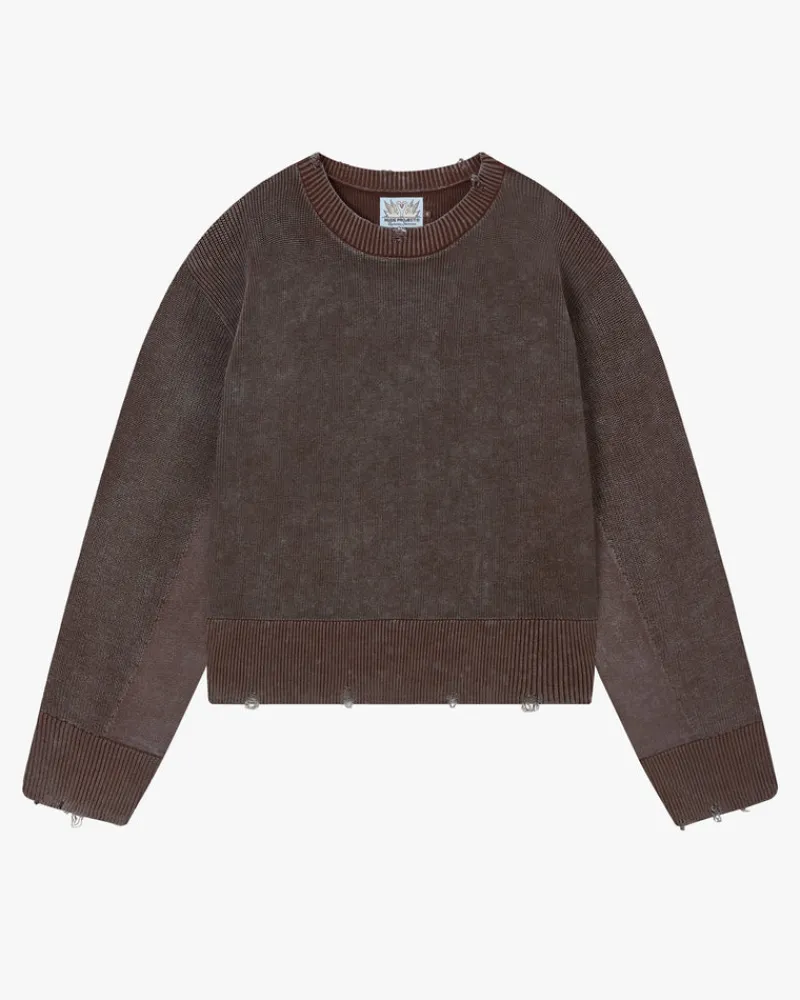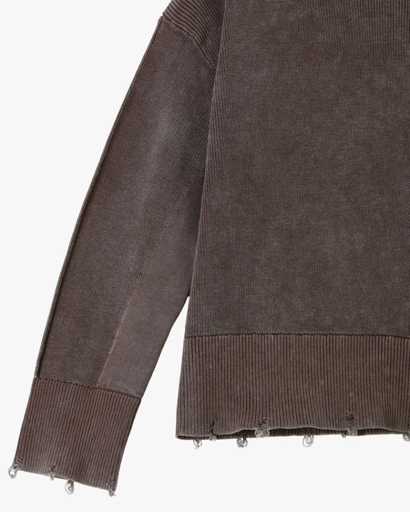 Distressed effect and wide ribbed hem and cuffs.