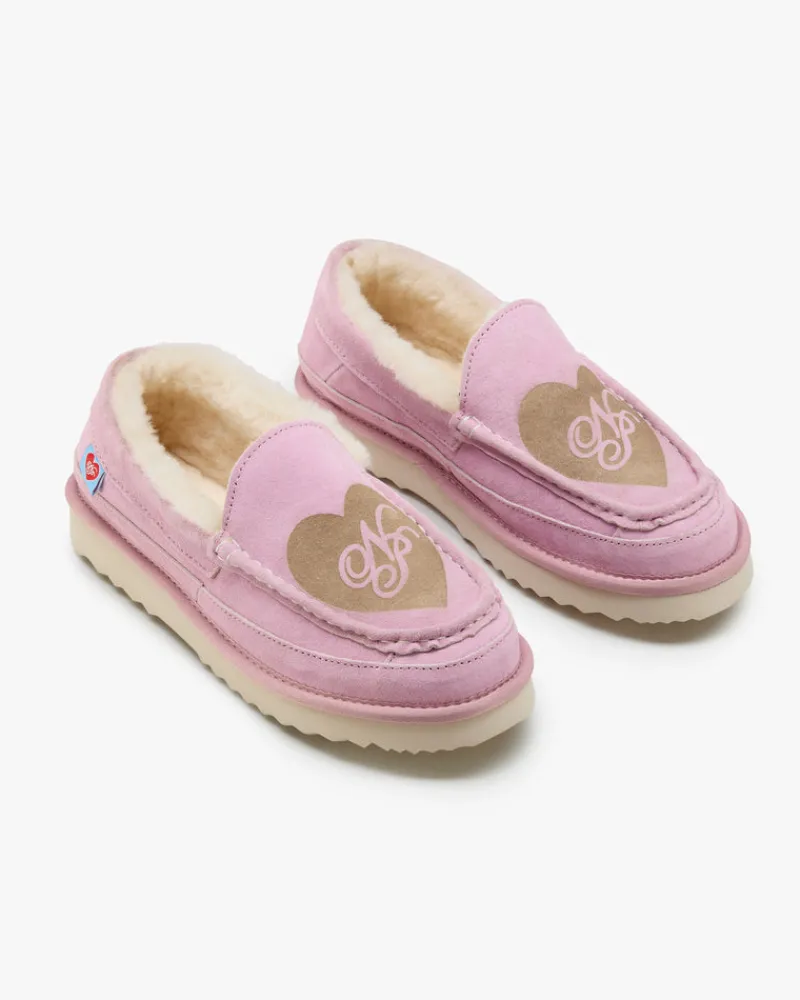 Genuine nubuck and real fur. Front embossed heart with NP.