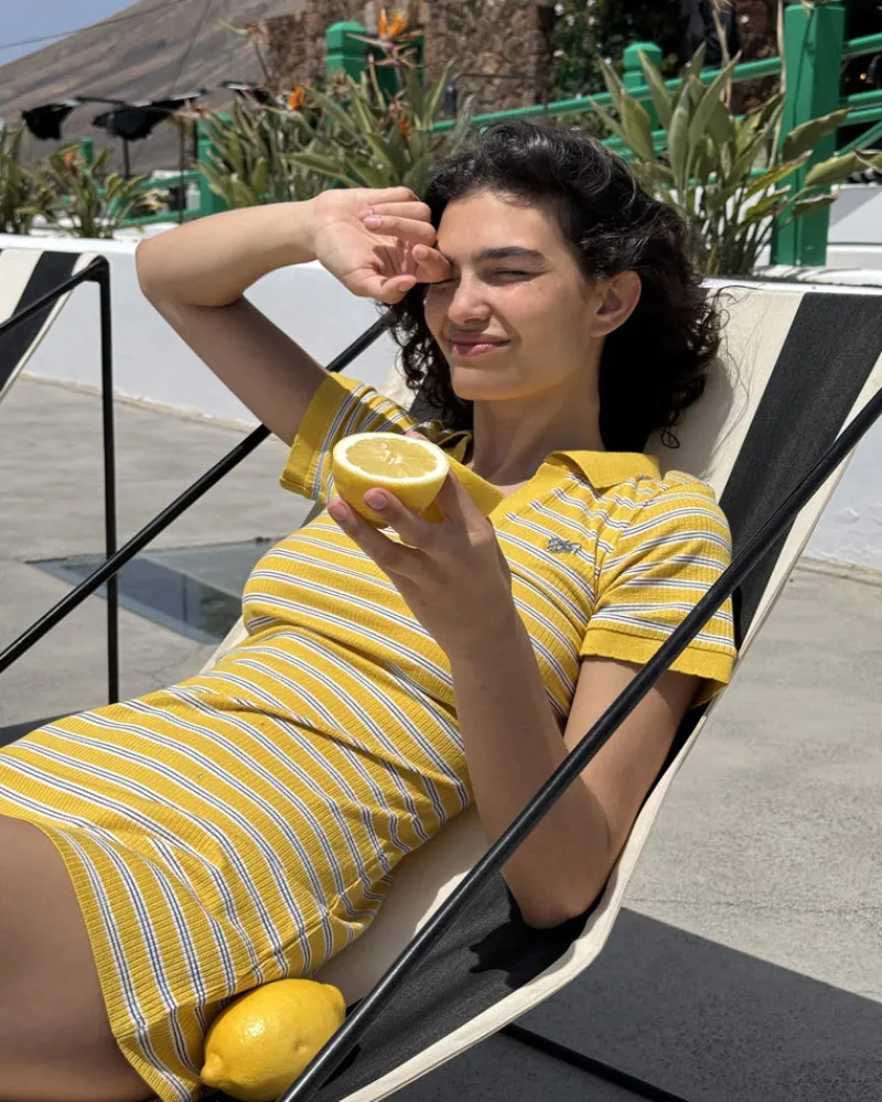 Composition::77% Viscose 19% Polyester 4% ElastaneFit:FItted Polo dressGraphic:Metal pin silver shine.Technical details:…