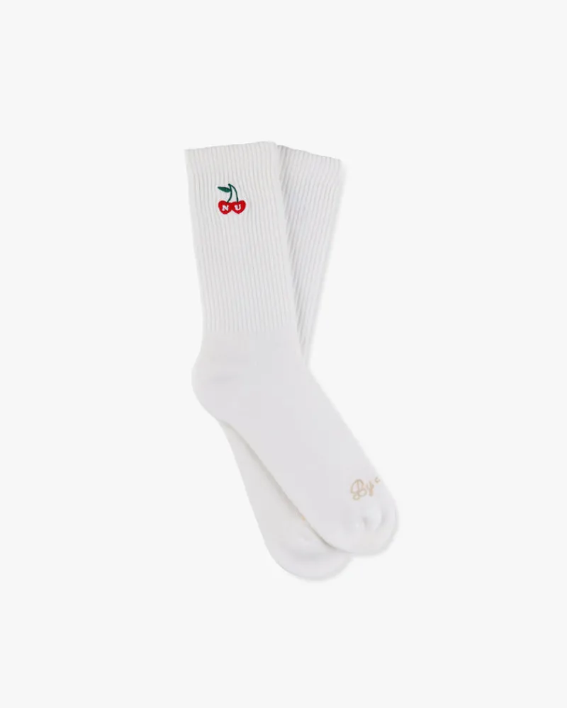Two pairs – four colors. Minimalist cherry jacquard logo on the side with a quote embroidery on the front