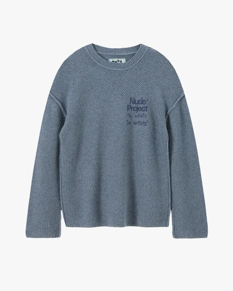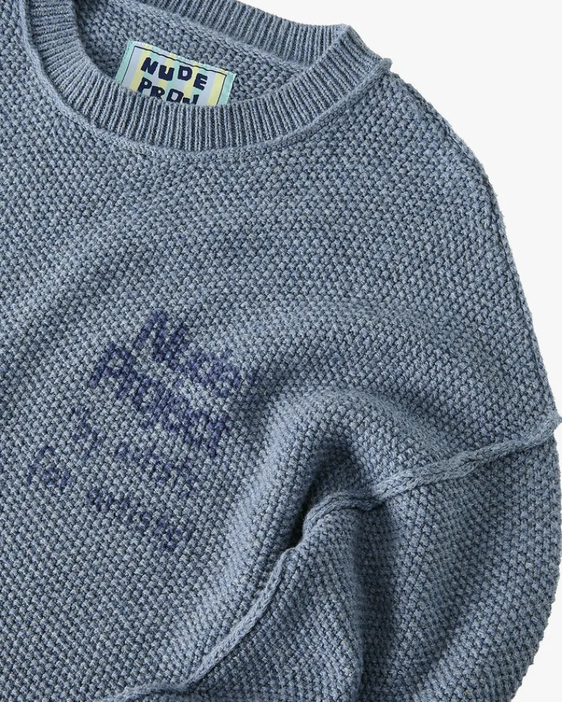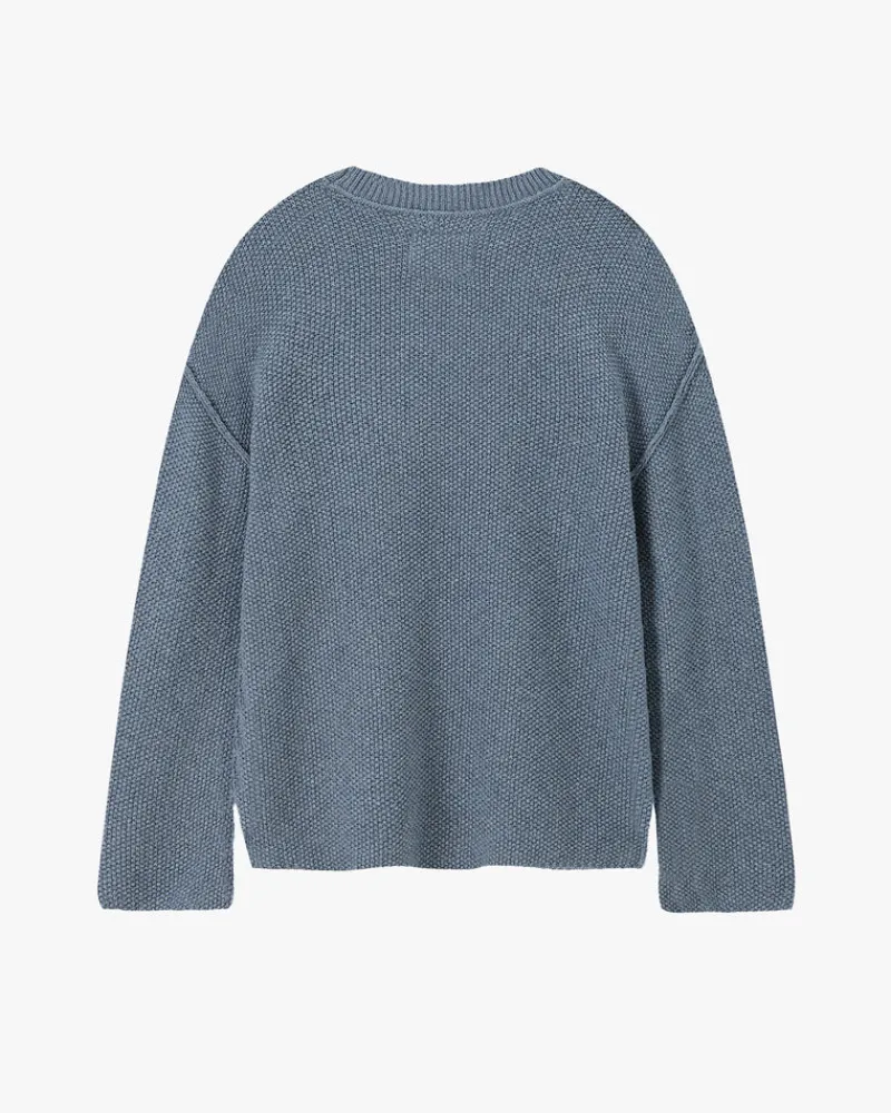 Sweater with rice knit structure, no ribs and reversed sleams.