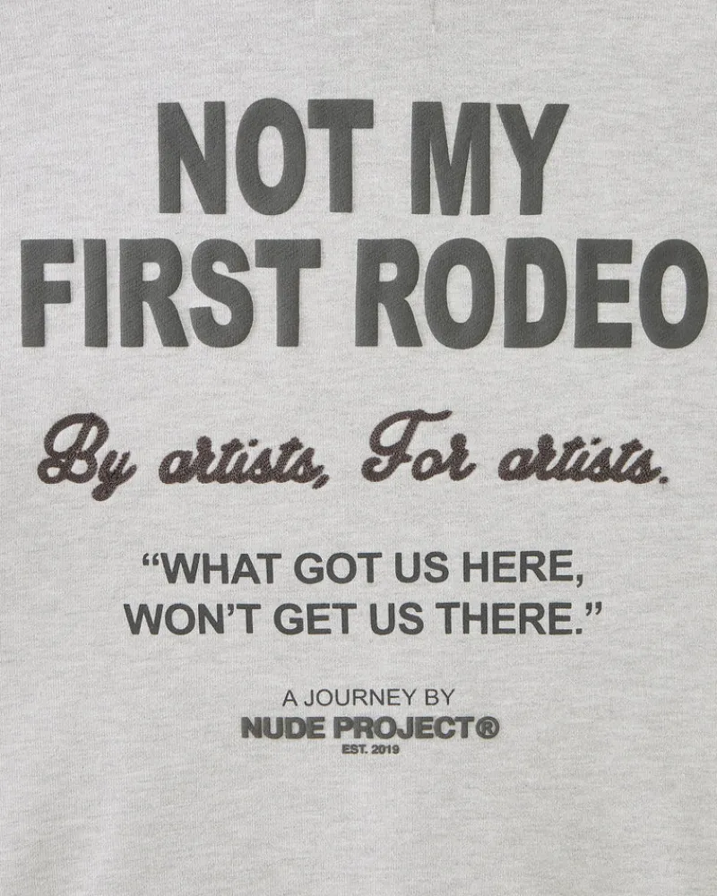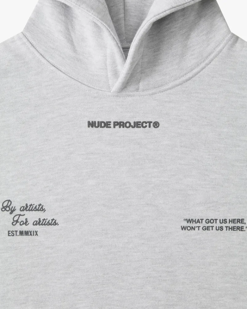 - Hoodie with print on front.