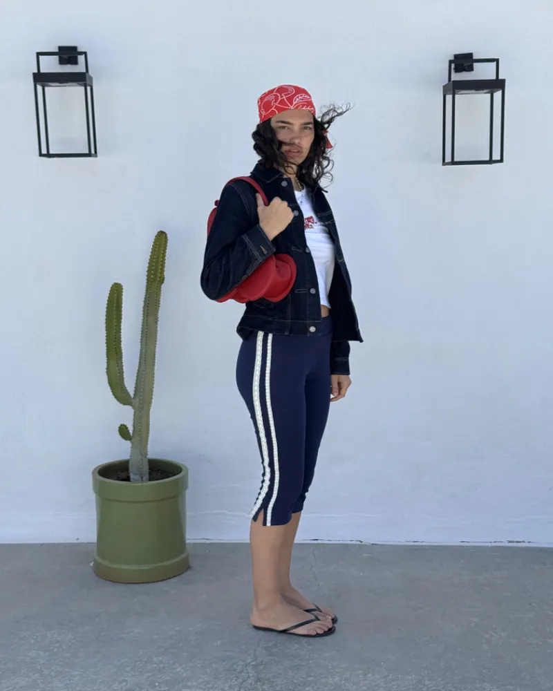 Composition:100% cottonFit:CapriGraphic:Decorative label.Technical details:Lace tape of 2 different widths on both sides