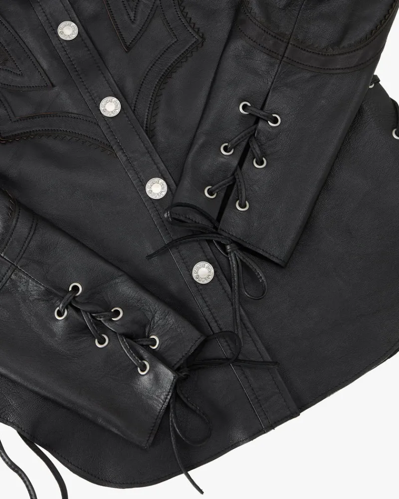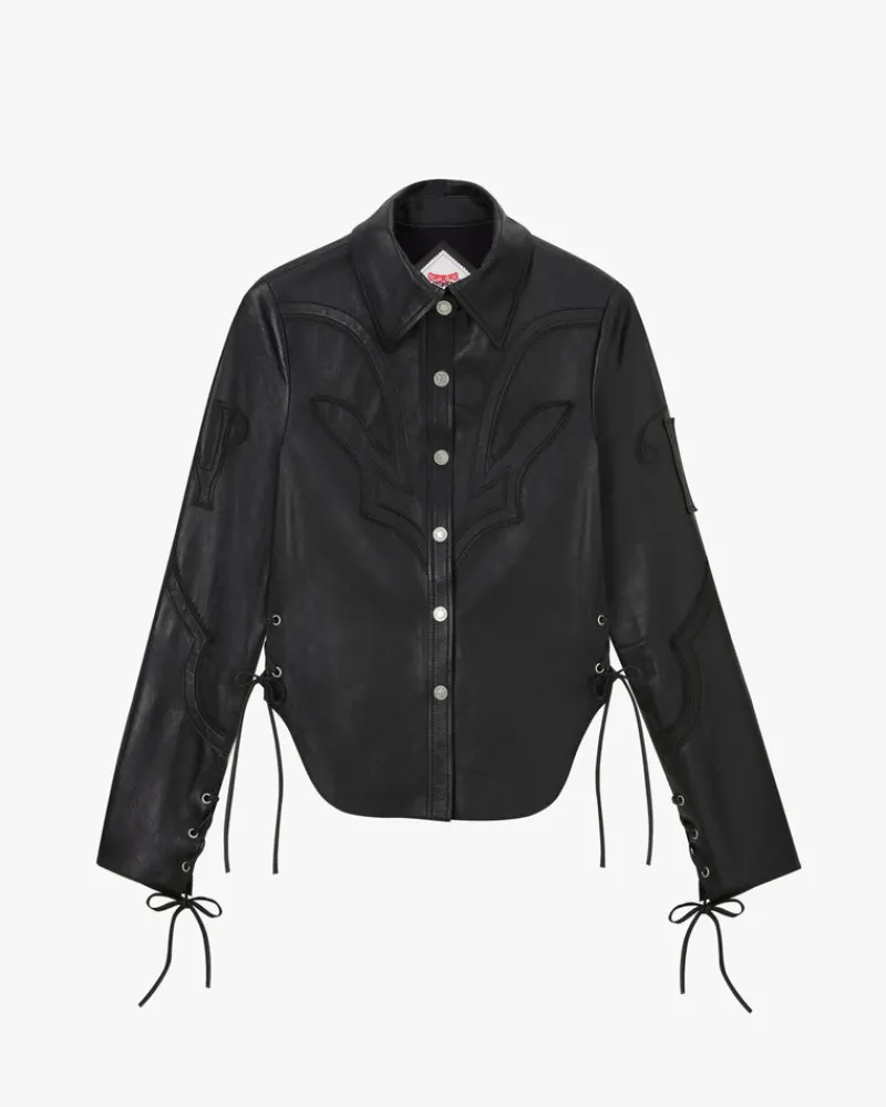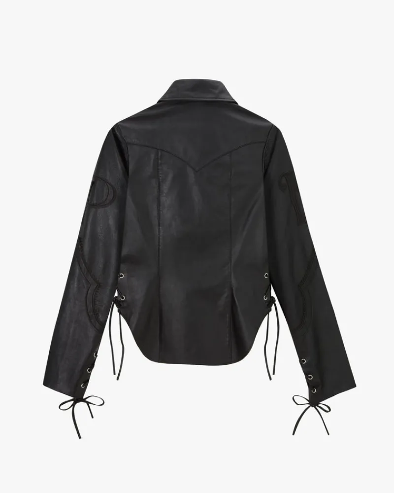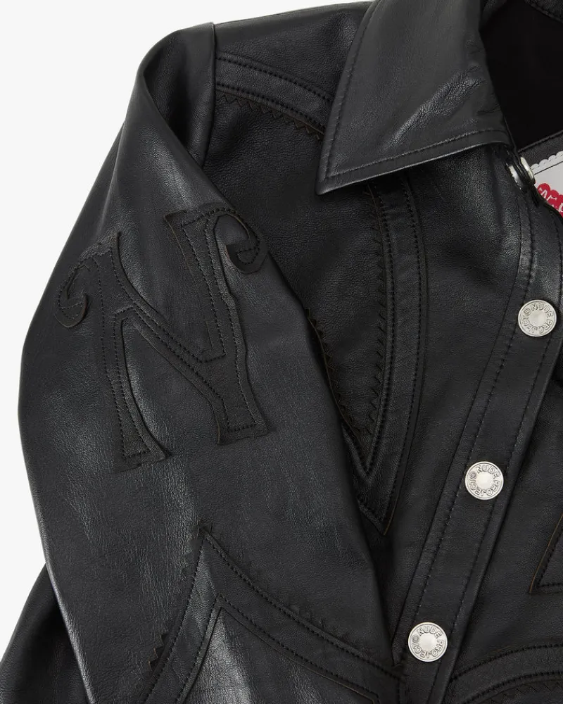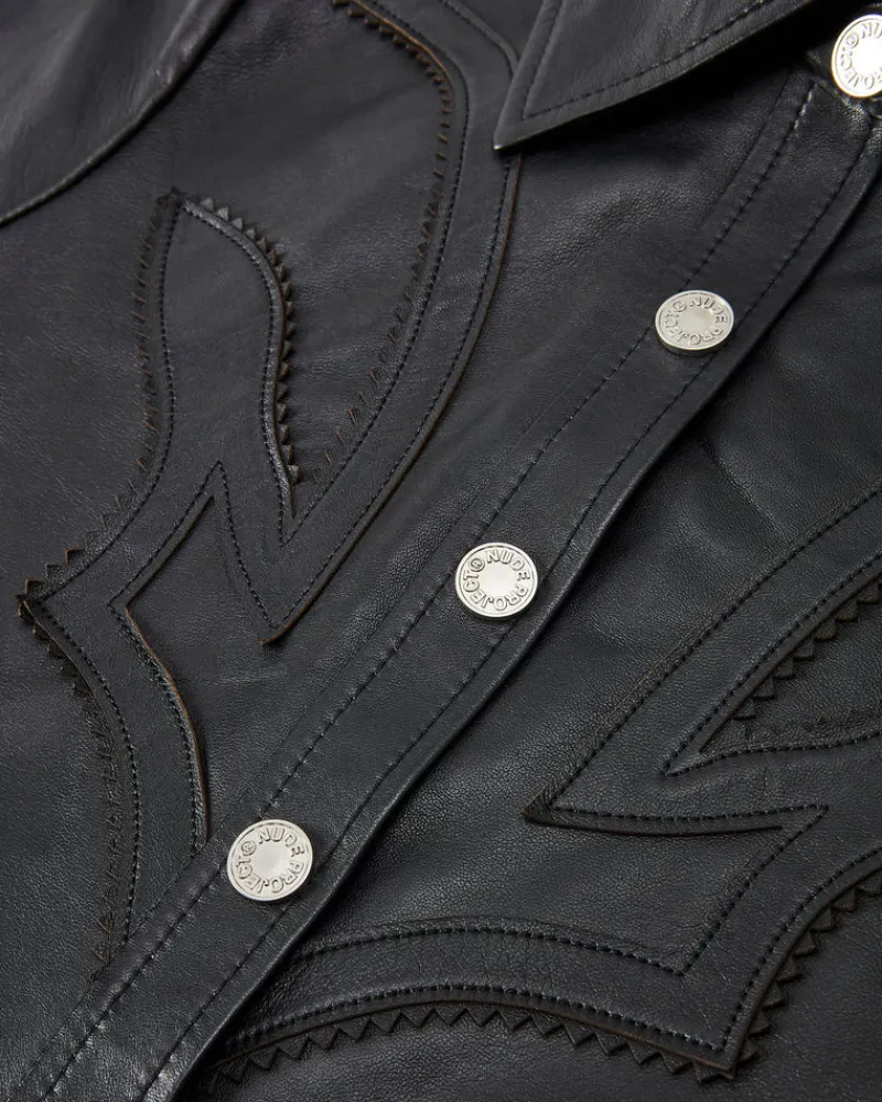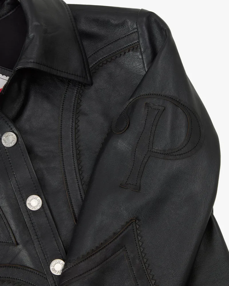 COMPOSITION:Shell Fabric: 100% LeatherFIT:Fitted. Hip length. GRAPHIC:N & P leather patches on sleeves.TECHNICAL D…