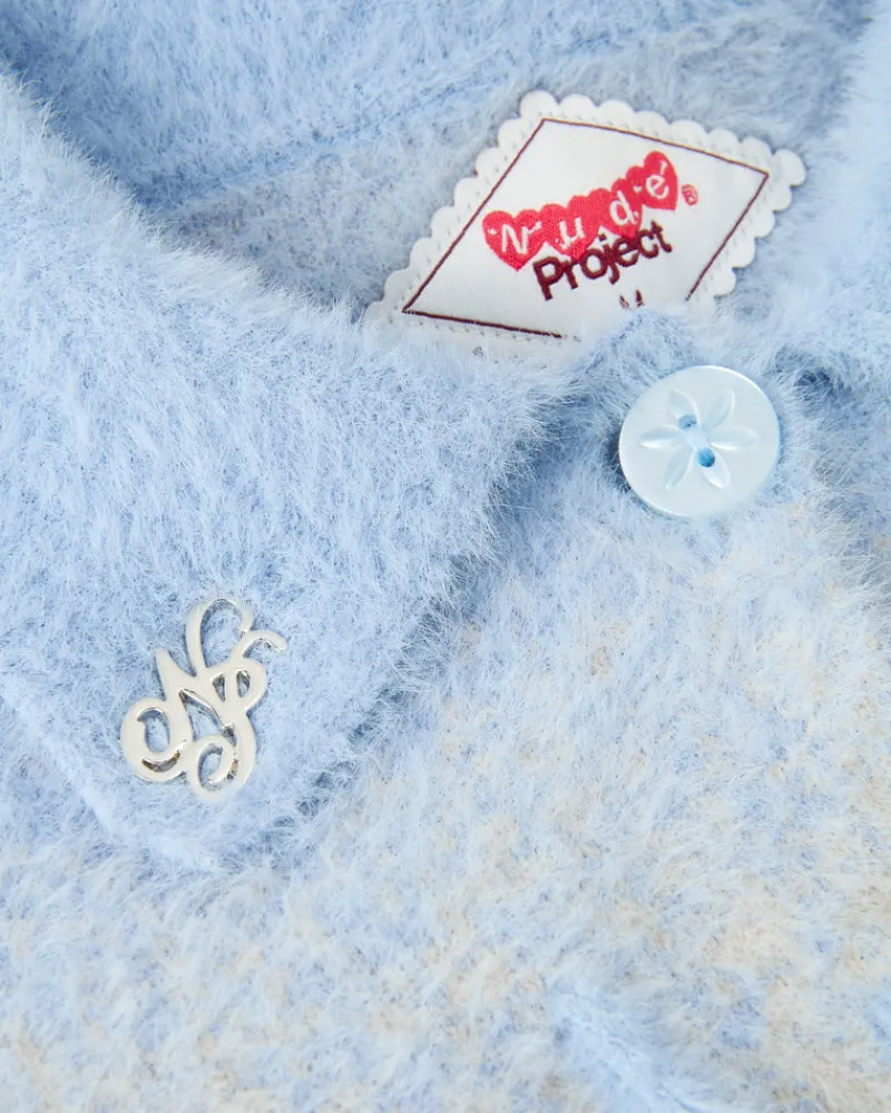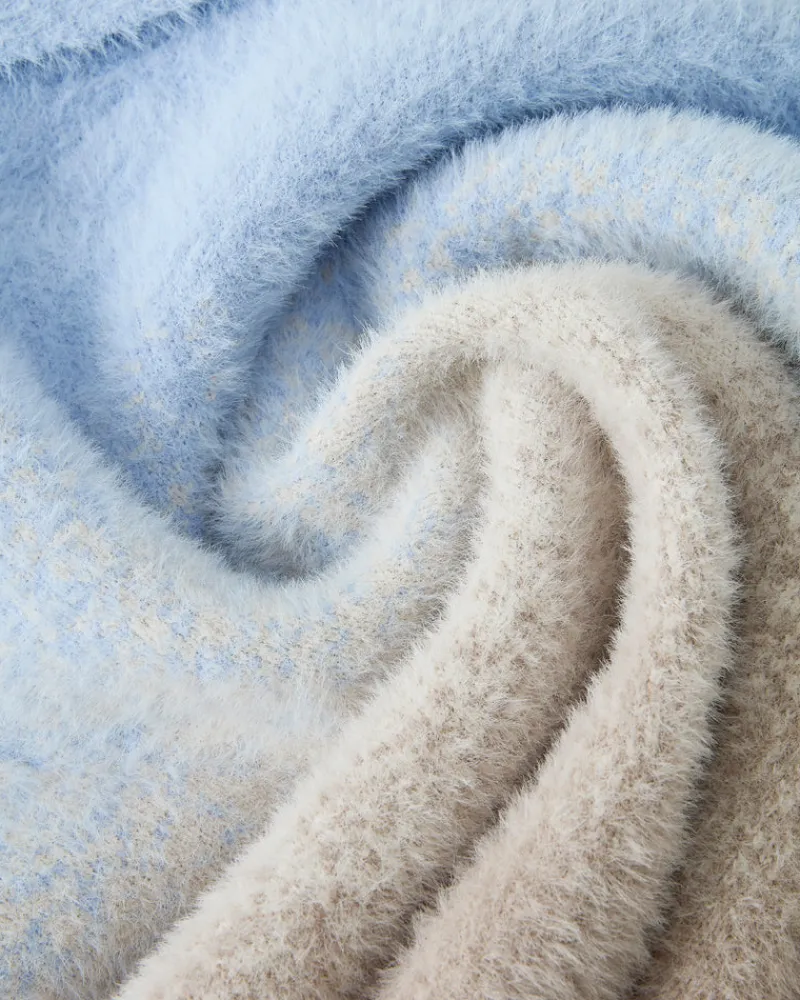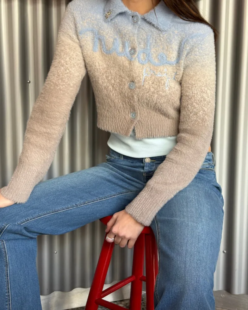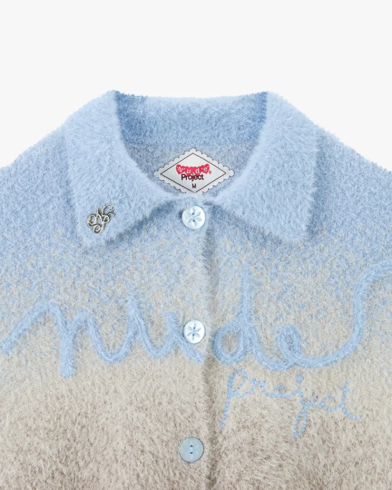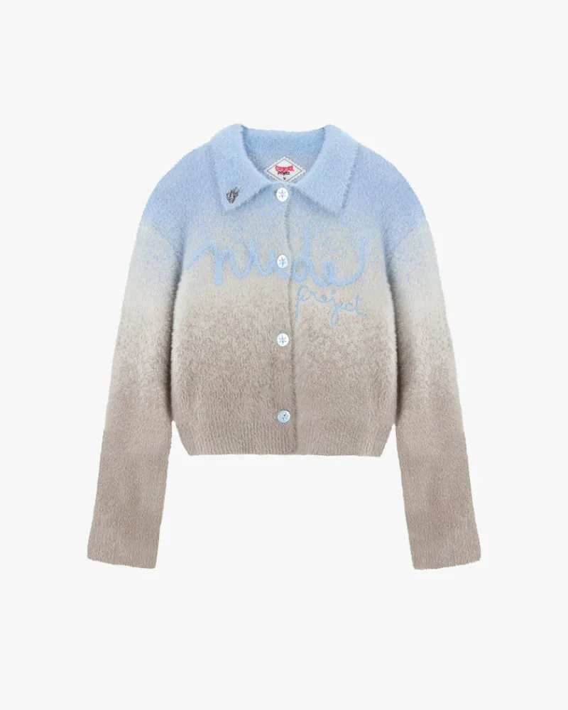 Degradé knitted jacket with collar, buttoned on front and extremly soft touch.