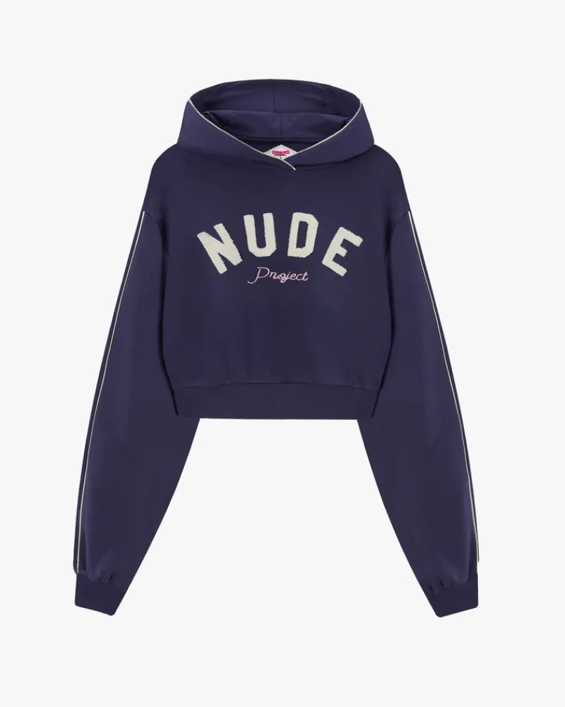COMPOSITION:Shell Fabric: 65% Cotton 35% PolyesterFIT:Cropped. GRAPHIC:Chenille "Nude" logo applique with &quo…