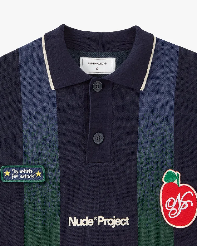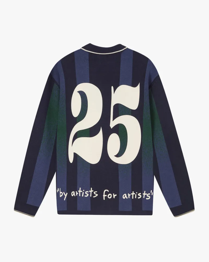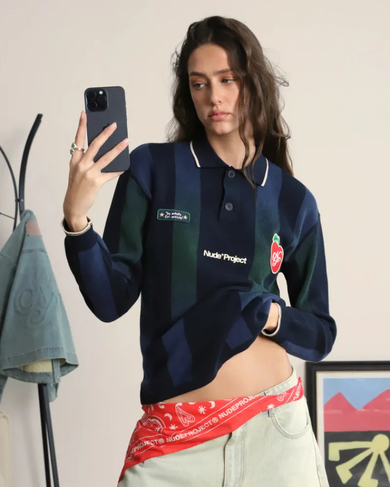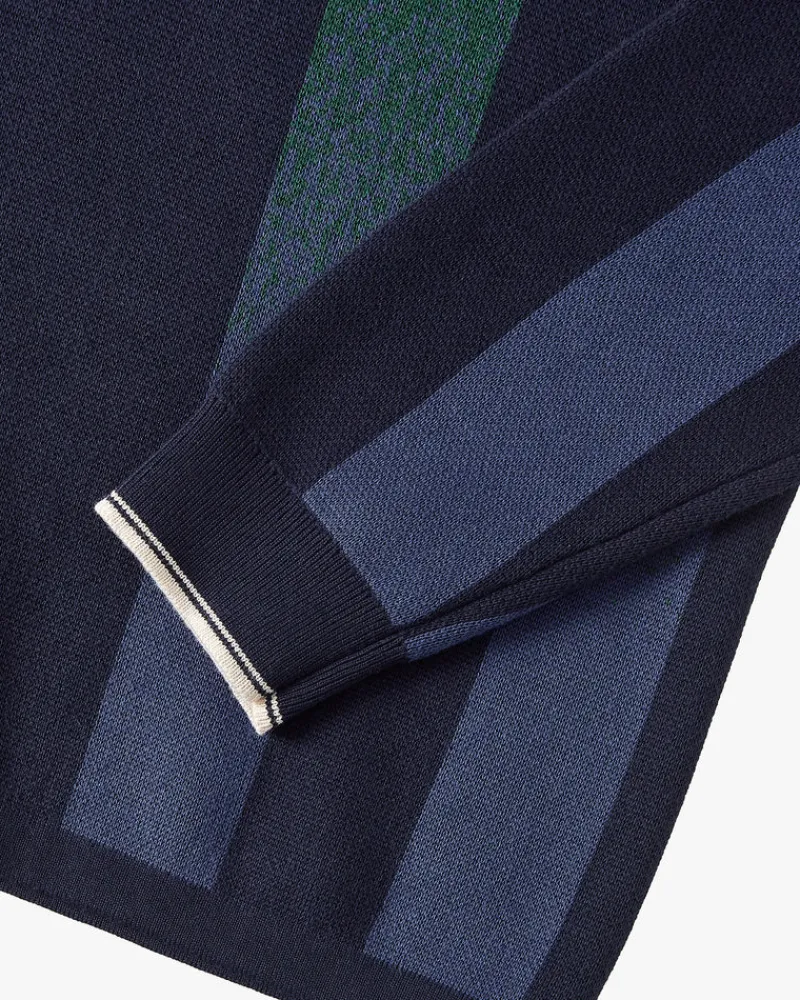 Long sleeve polo with jaquard srtipes